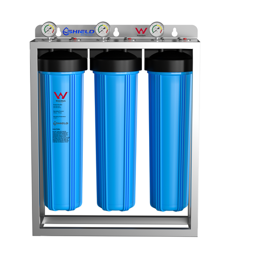 WaterMark Certified 20" x 4.5" Triple Whole House Water Filter System Stainless Steel Cover/Frame no filters